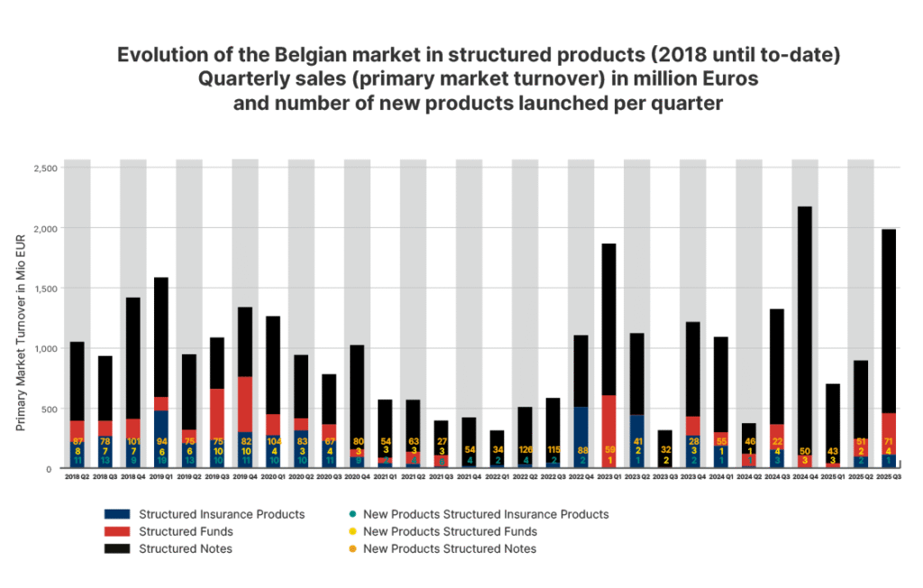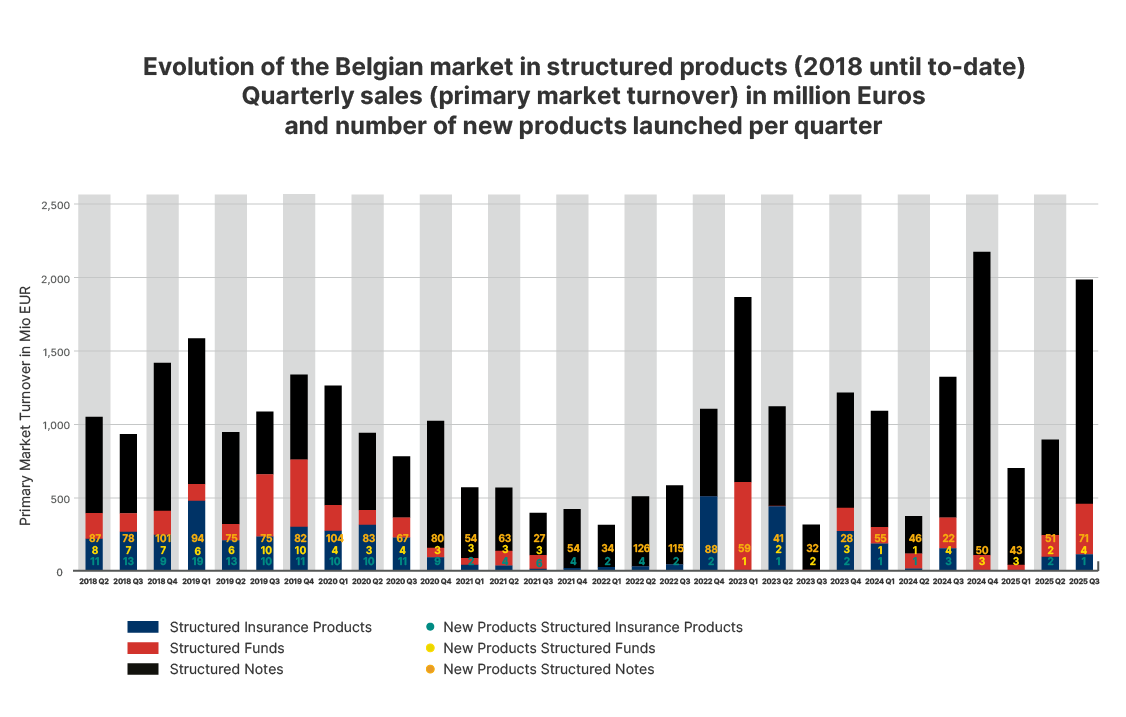 As of April 2015, BELSIPA publishes data on structured products that are available on the Belgian market. Investment in and trading of products in their various wrappers, such as structured notes, funds and insurance contracts are documented in a summary market report with easy-to-understand charts.